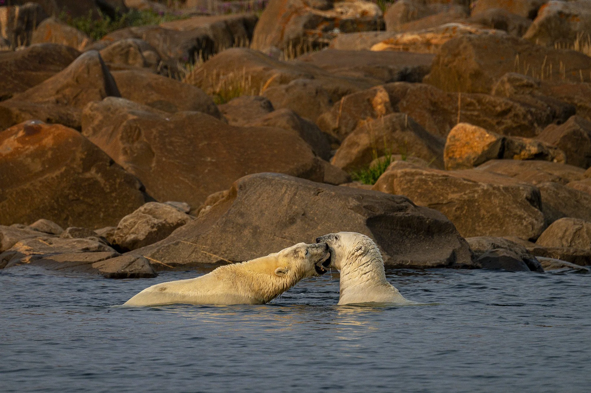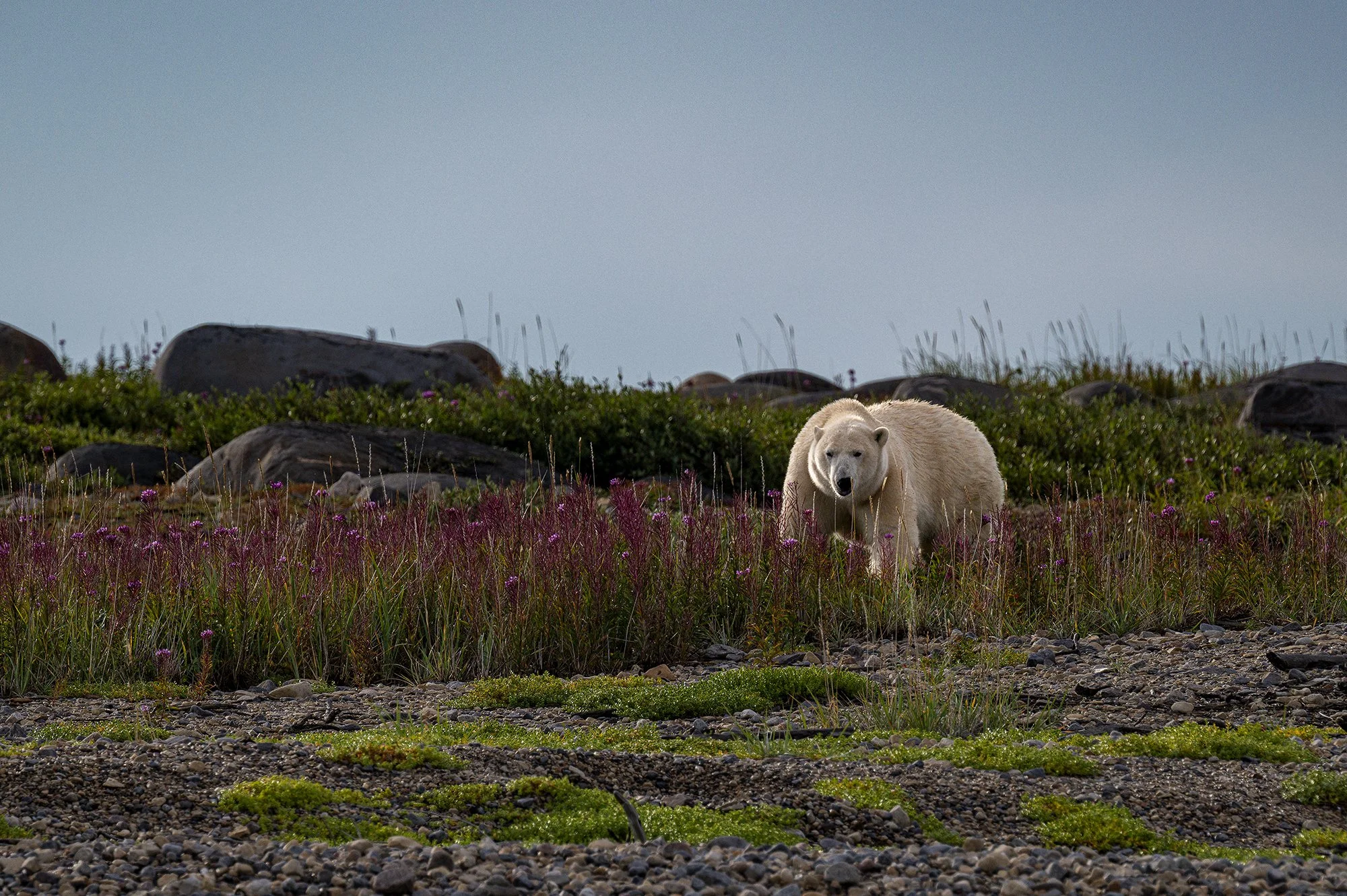 The beluga whales migrate to the Churchill River every spring, usually in June or early July and stay until early September. The polar bears start showing up once the ice in the area has gone, usually in July. We are going at a special time when we’re likely to see thousands of beluga whales, several polar bears, and the aurora borealis (Norther lights) at night. We will likely see several types of whale behavior like feeding and playing, and pod types including young calves with their mother or a babysitter, groups of rowdy males, and inquisitive teenagers.